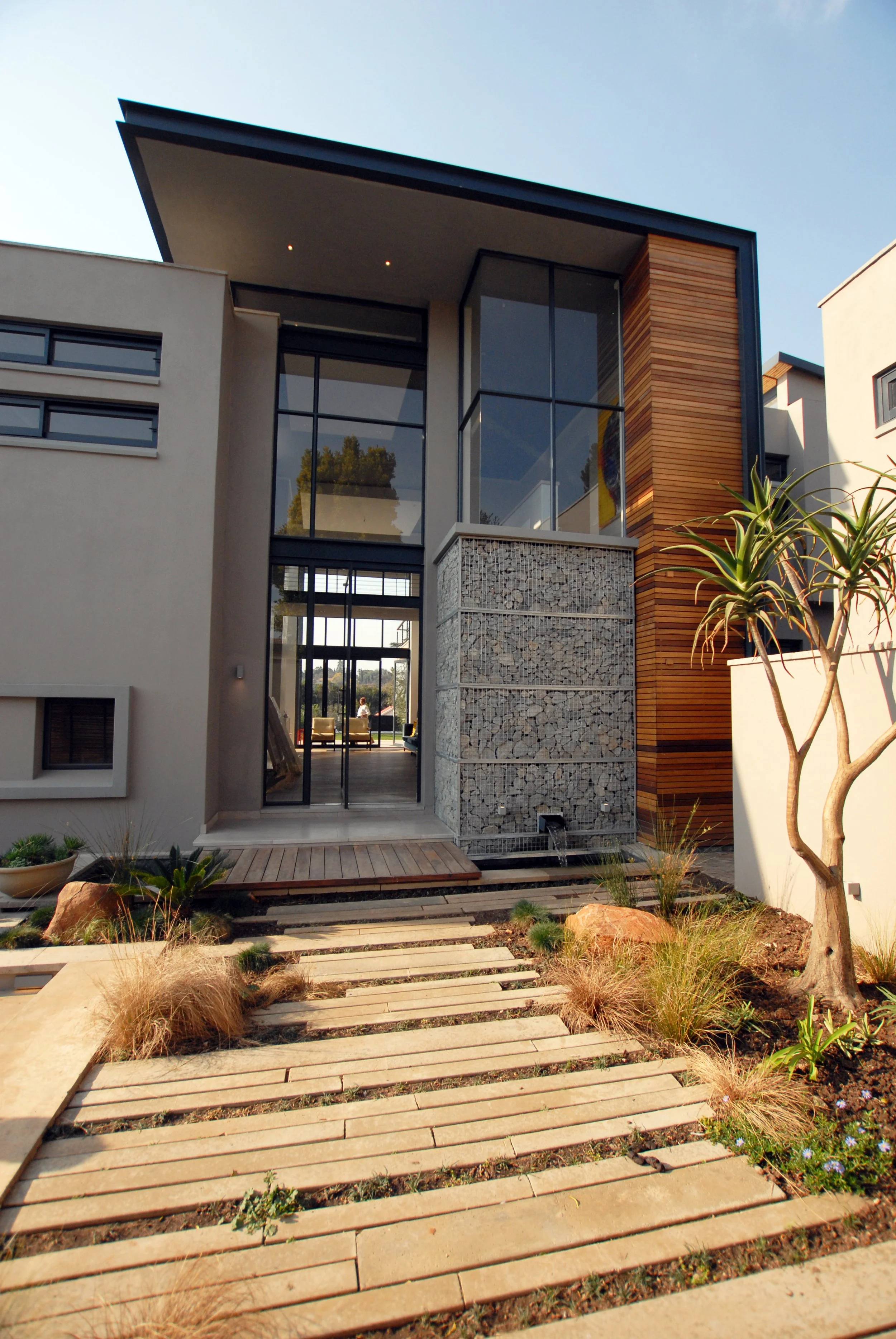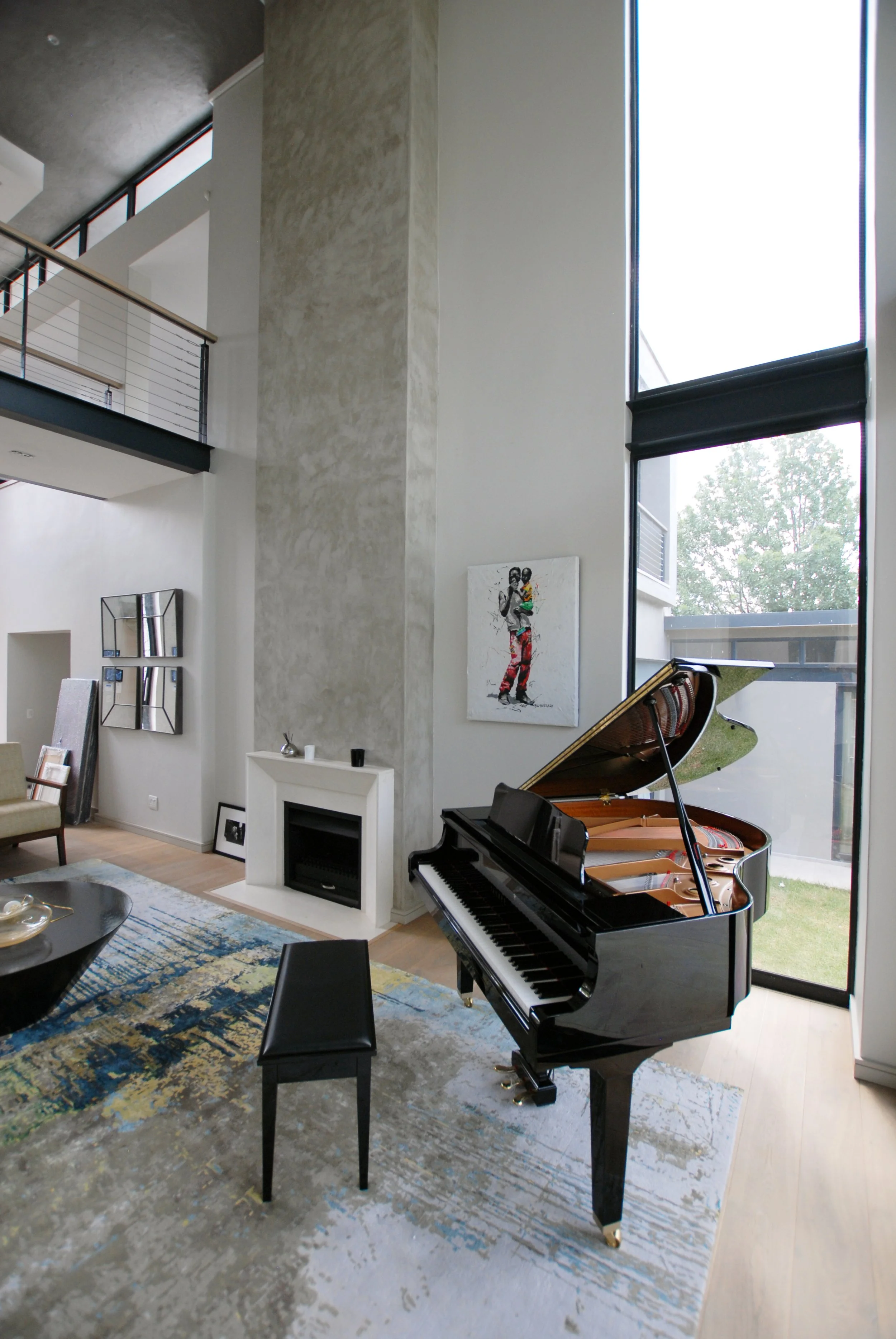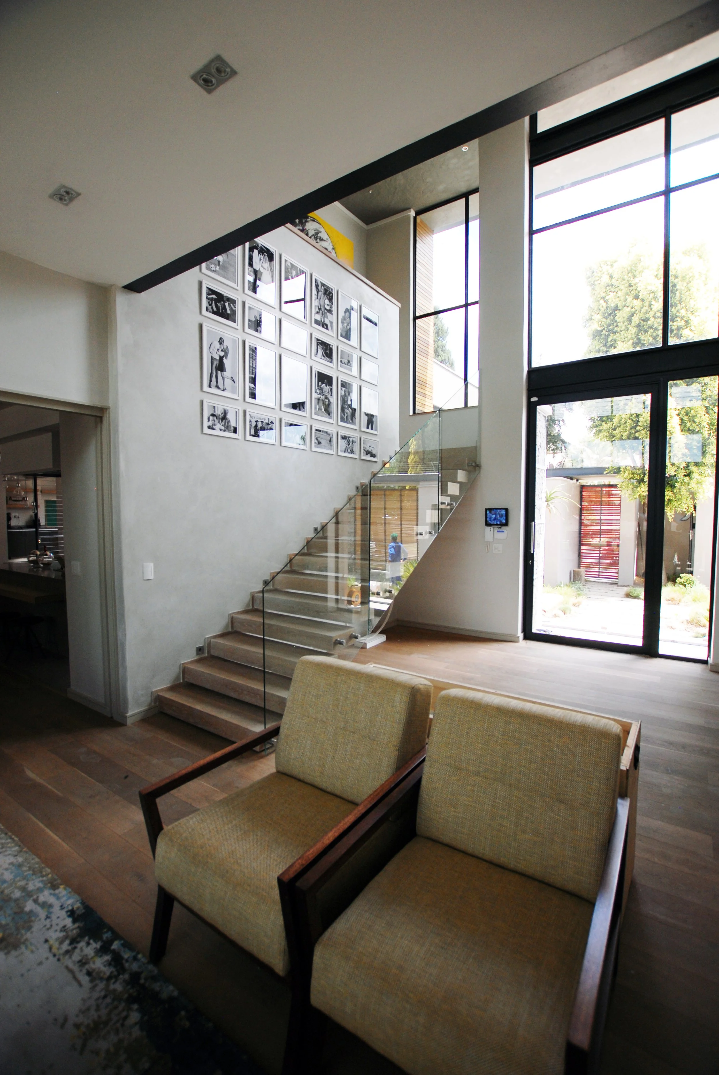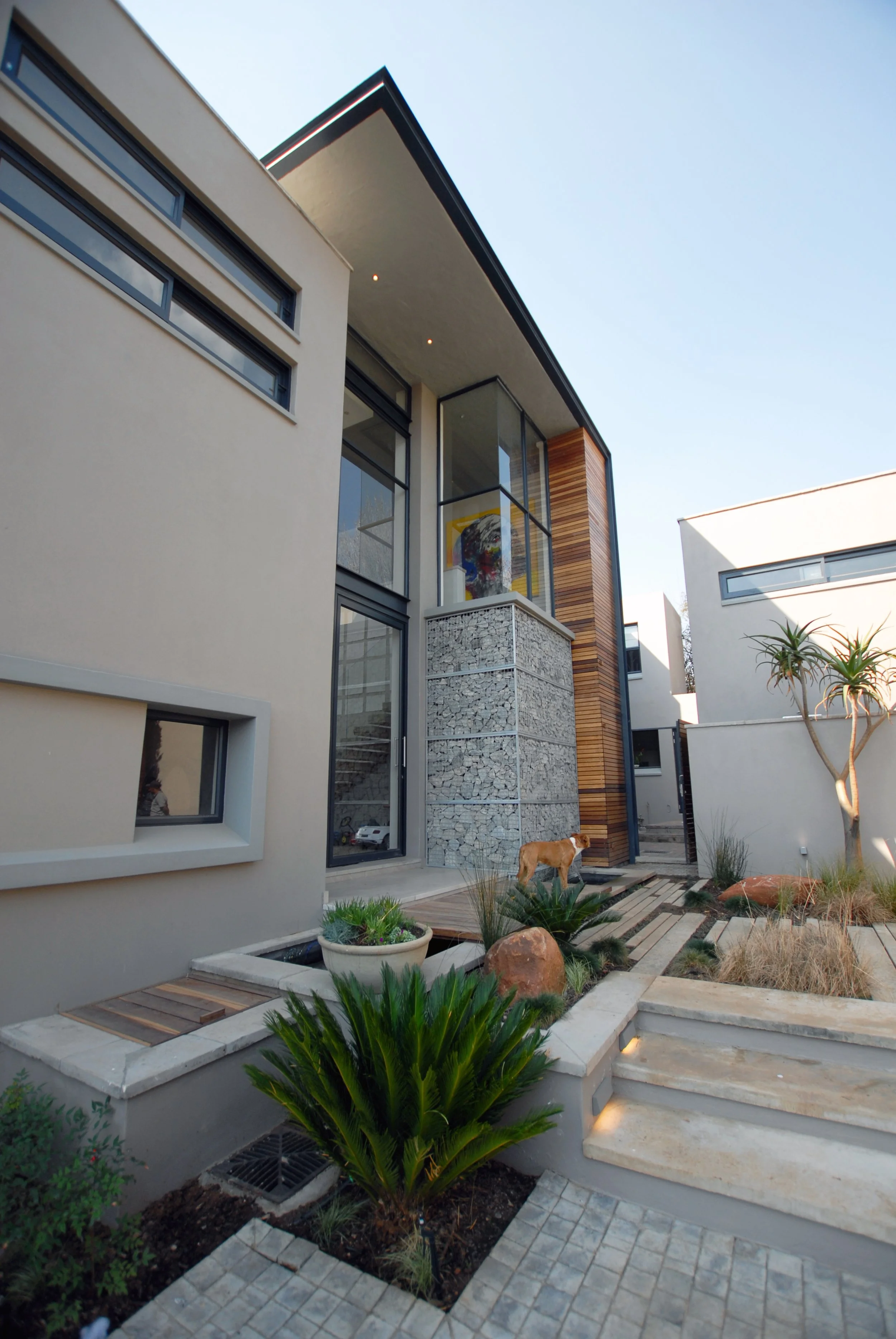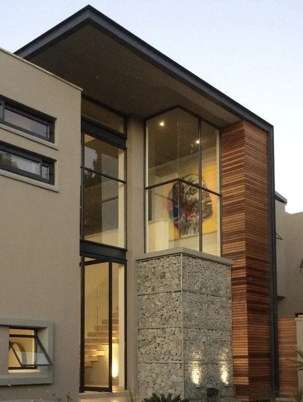 When we were first approached to remodel an old single story ranch style house for an international DJ, a celebrity clothing designer and their young family, the only thing they liked about it was its location in Sandton, Johannesburg, and the garden. The brief for an entertainer’s home that still gave the family privacy, 5 stylish en suite bedrooms, entertaining spaces, garaging for 6 cars and a sound proof studio all on the original footprint so as not to encroach on the garden, meant extending up and down, rather than out. We gutted the ground floor and opened it up create free flowing living sapces, added a second floor of bedrooms and dug in a basement to house a wine cellar, studio and cinema with a glass window looking into the statement swimming pool. It remains one of my favorite journeys as the house unfolded from an ugly duckling to a dramatic sculptural statement.